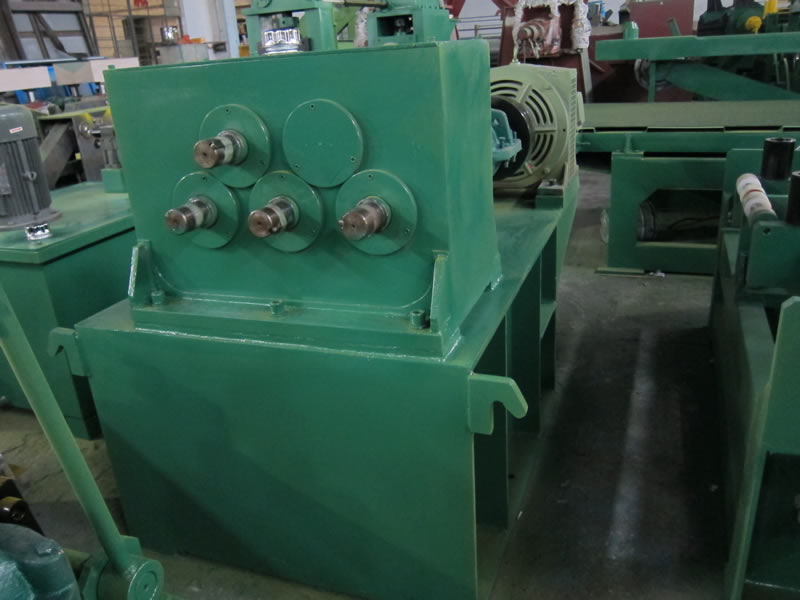 該生產(chǎn)線液壓系統(tǒng)主要原件采用臺(tái)灣高精度組件,電氣控制采用進(jìn)口PLC程序控制器和觸摸屏進(jìn)行全線功能控制,校平主電機(jī)采用直流電機(jī),直流控制器采用英國(guó)歐陸公司產(chǎn)品,具有自動(dòng)化程度高、剪切精度高、性能穩(wěn)定可靠、操作維護(hù)方便等特點(diǎn)。