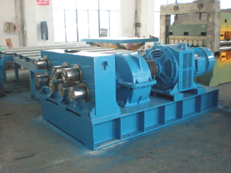 該生產(chǎn)線液壓系統(tǒng)主要原件采用臺(tái)灣高精度組件,電氣控制采用進(jìn)口PLC程序控制器和觸摸屏進(jìn)行全線功能控制,校平主電機(jī)采用直流電機(jī),直流控制器采用英國(guó)歐陸公司產(chǎn)品,具有自動(dòng)化程度高、剪切精度高、性能穩(wěn)定可靠、操作維護(hù)方便等特點(diǎn)。