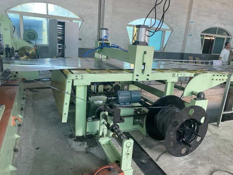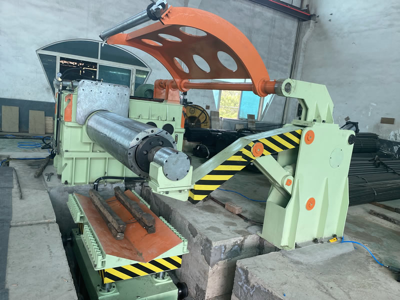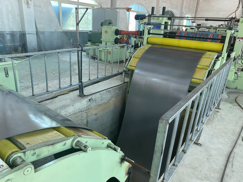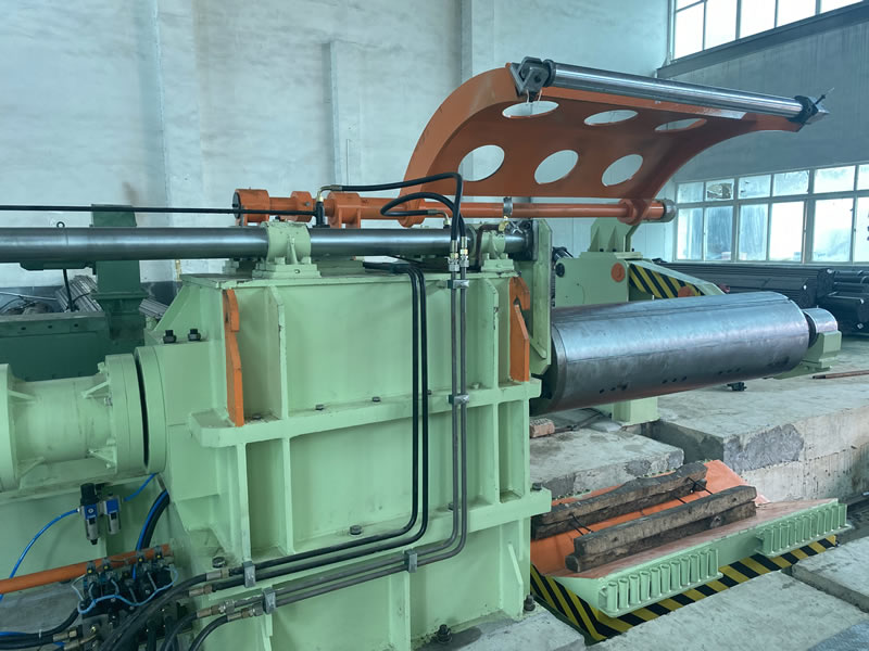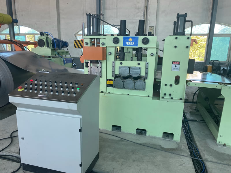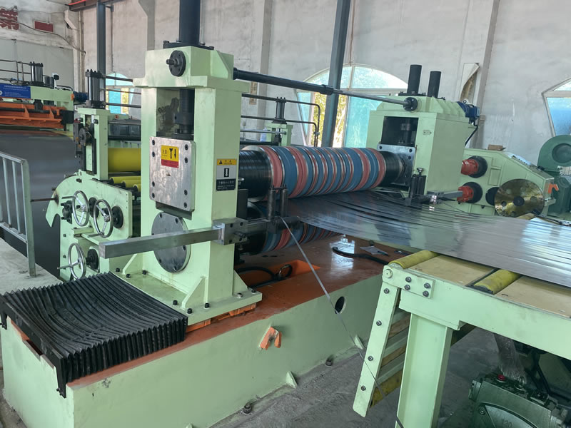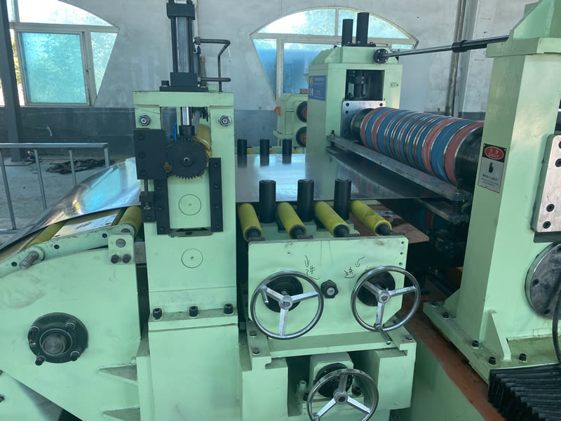 本設(shè)備有開卷、夾送初矯、縱剪、張力、收卷等主要部件組成。設(shè)備工作時(shí)鋼卷上好開卷機(jī)后,壓引鋼板進(jìn)夾送初矯經(jīng)剪切板頭后,過渡調(diào)節(jié)對中進(jìn)入縱剪機(jī)進(jìn)行縱剪分條,分條后帶鋼經(jīng)活套過渡進(jìn)入欲分料張力站,最后由收卷機(jī)卷取成帶鋼卷,經(jīng)打包后由卸料小車輸送出生產(chǎn)線。