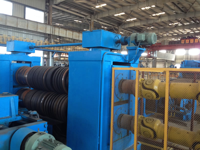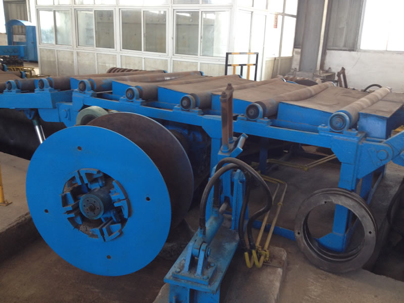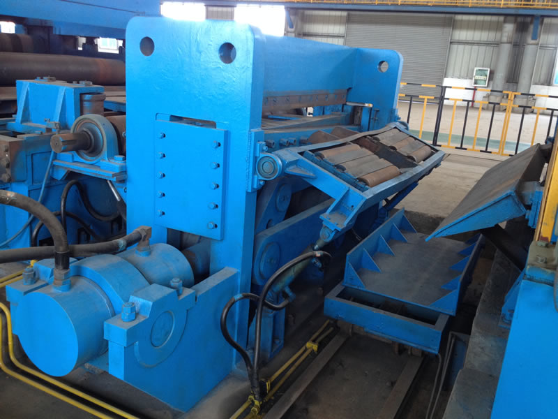 本設(shè)備有開卷、夾送初矯、縱剪、張力、收卷等主要部件組成。設(shè)備工作時鋼卷上好開卷機后,壓引鋼板進夾送初矯經(jīng)剪切板頭后,過渡調(diào)節(jié)對中進入縱剪機進行縱剪分條,分條后帶鋼經(jīng)活套過渡進入欲分料張力站,最后由收卷機卷取成帶鋼卷,經(jīng)打包后由卸料小車輸送出生產(chǎn)線。