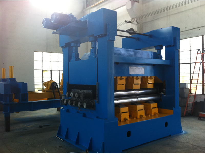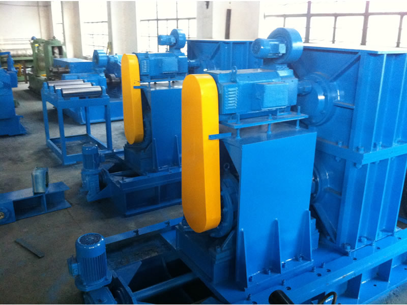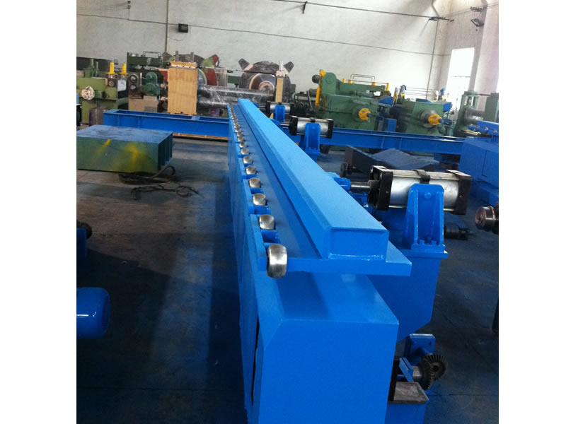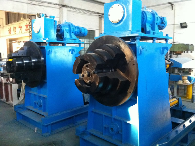 本設備有開卷、夾送初矯、縱剪、張力、收卷等主要部件組成。設備工作時鋼卷上好開卷機后,壓引鋼板進夾送初矯經(jīng)剪切板頭后,過渡調節(jié)對中進入縱剪機進行縱剪分條,分條后帶鋼經(jīng)活套過渡進入欲分料張力站,最后由收卷機卷取成帶鋼卷,經(jīng)打包后由卸料小車輸送出生產(chǎn)線。
